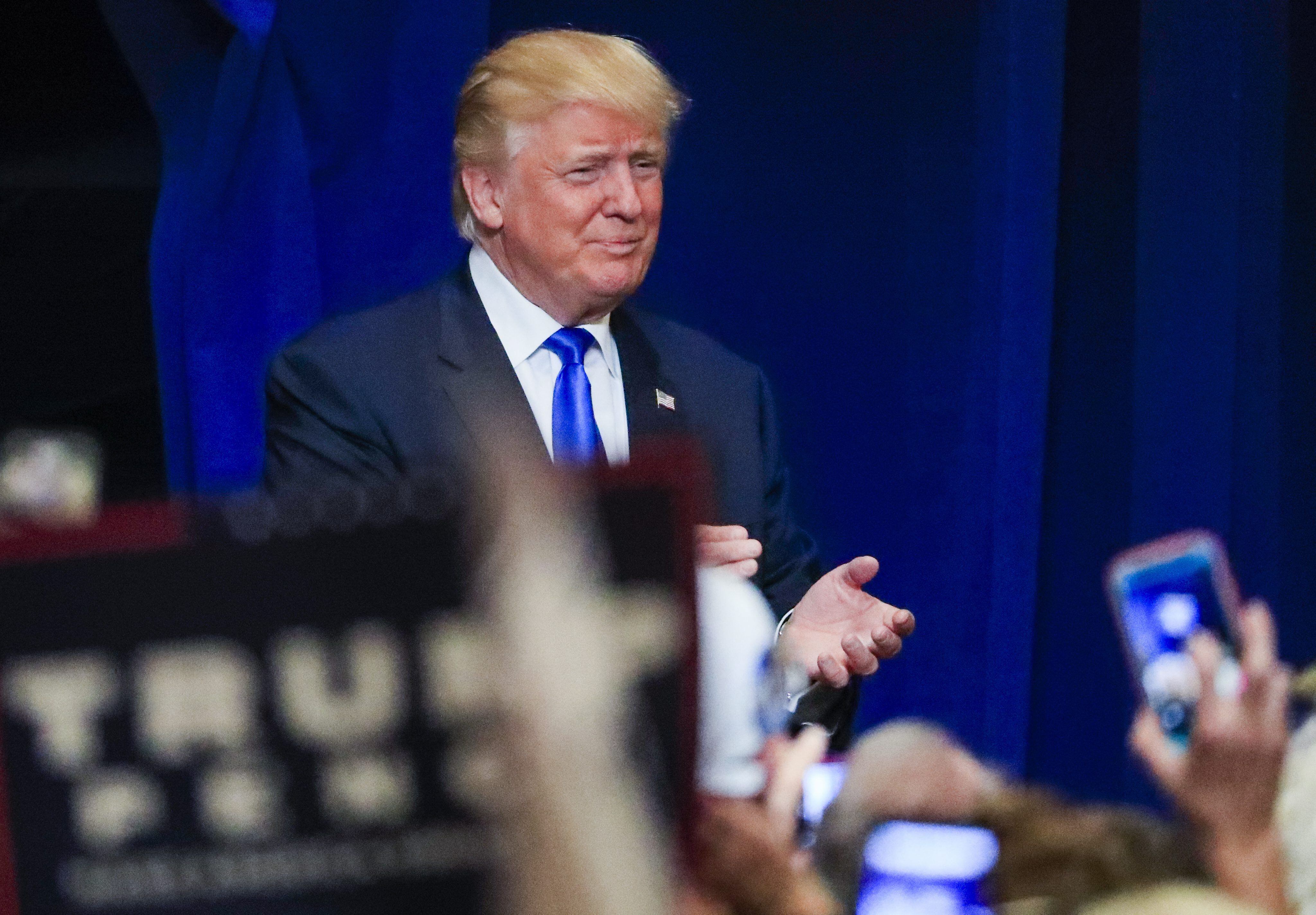 El magnate inmobiliario viajó a Wisconsin, estado en el que tiene pocas posibilidades de salir victorioso -los demócratas ganan ahí desde 1988- pero simbólico por el enfrentamiento que mantiene con el presidente de la Cámara de Representantes de Estados Unidos, Paul Ryan, oriundo de esa tierra.