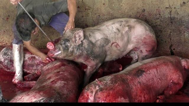El video muestra el excesivo abuso que sufren los animales en este tipo de lugares. Muchos de ellos son enganchados por la boca, acuchillados o asfixiados hasta que lentamente encuentran su muerte.