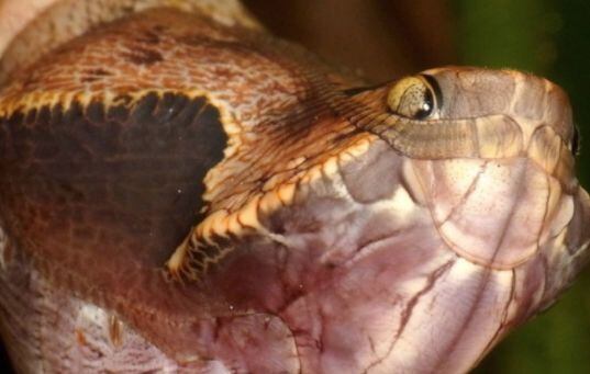 Durante 13 días, D. darius se destruye y se reforma dentro de lo que parece ser la cabeza de una víbora pitón de Gabón.