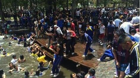Este viernes 3 de enero, la laguna de la Alameda fue el escenario de la antesala del Carnaval en Quito. Varios estudiantes acudieron al lugar para utilizar el agua de la laguna para el acostumbrado juego de Carnaval y el hecho fue registrado en redes sociales, a través de Facebook.
