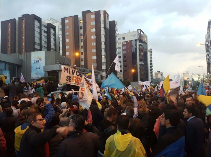 El guardia no les permitió entrar a los manifestantes y por ello decidieron romper la puerta del estacionamiento. Los manifestantes confundieron a un equipo de Ecuavisa y a un fotorreportero de diario El Comercio con personas vinculadas al oficialismo.
