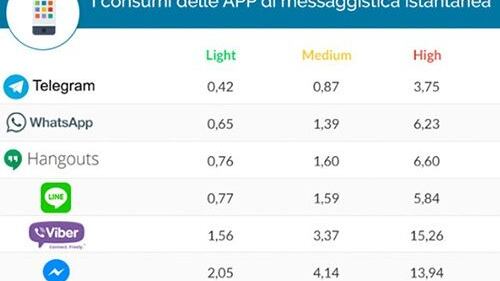 Para estimar el consumo de cada aplicación SosTariffe.it ha llevado a cabo una prueba durante 1 hora de uso en teléfonos inteligentes conectados a una red de datos 4G / LTE, mediante la simulación de tres perfiles de consumo: