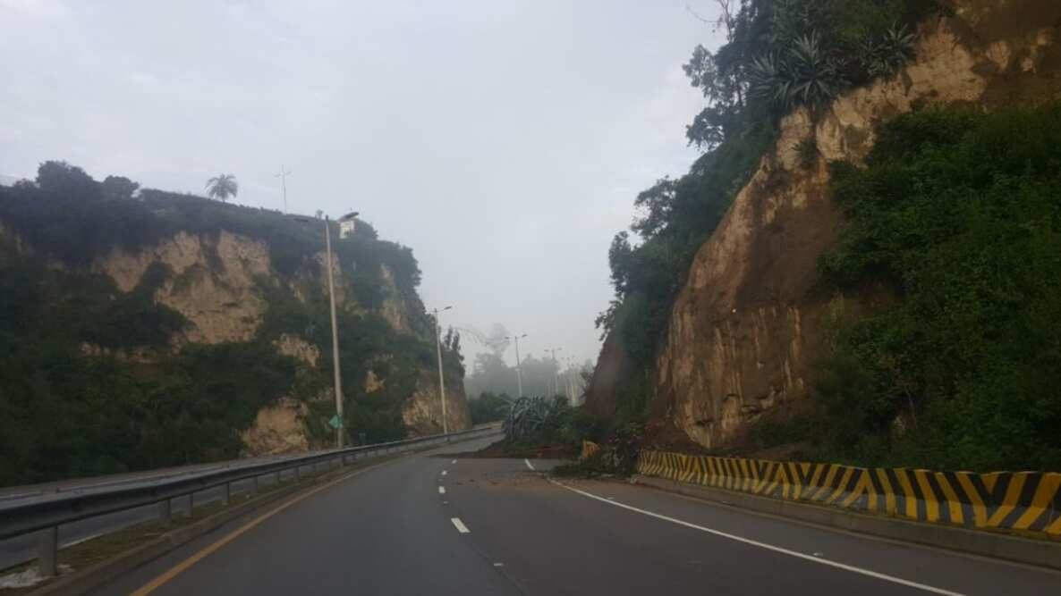 Hoy, 17 de mayo, la Agencia Metropolitana de Tránsito (AMT) informó que el paso vehicular en los 3 carriles de la vía Interoceánica se encuentra restringido debido a un deslizamiento de tierra que se produjo en el Redondel del Auqui, a causa de las intensas precipitaciones.