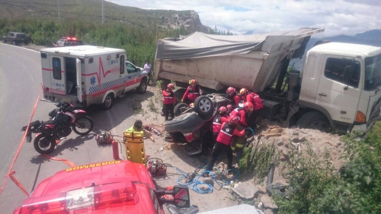 El personal del Cuerpo de Bomberos de Quito atendió un accidente de tránsito suscitado en la Vía Culebrillas, sector Tanlahua.