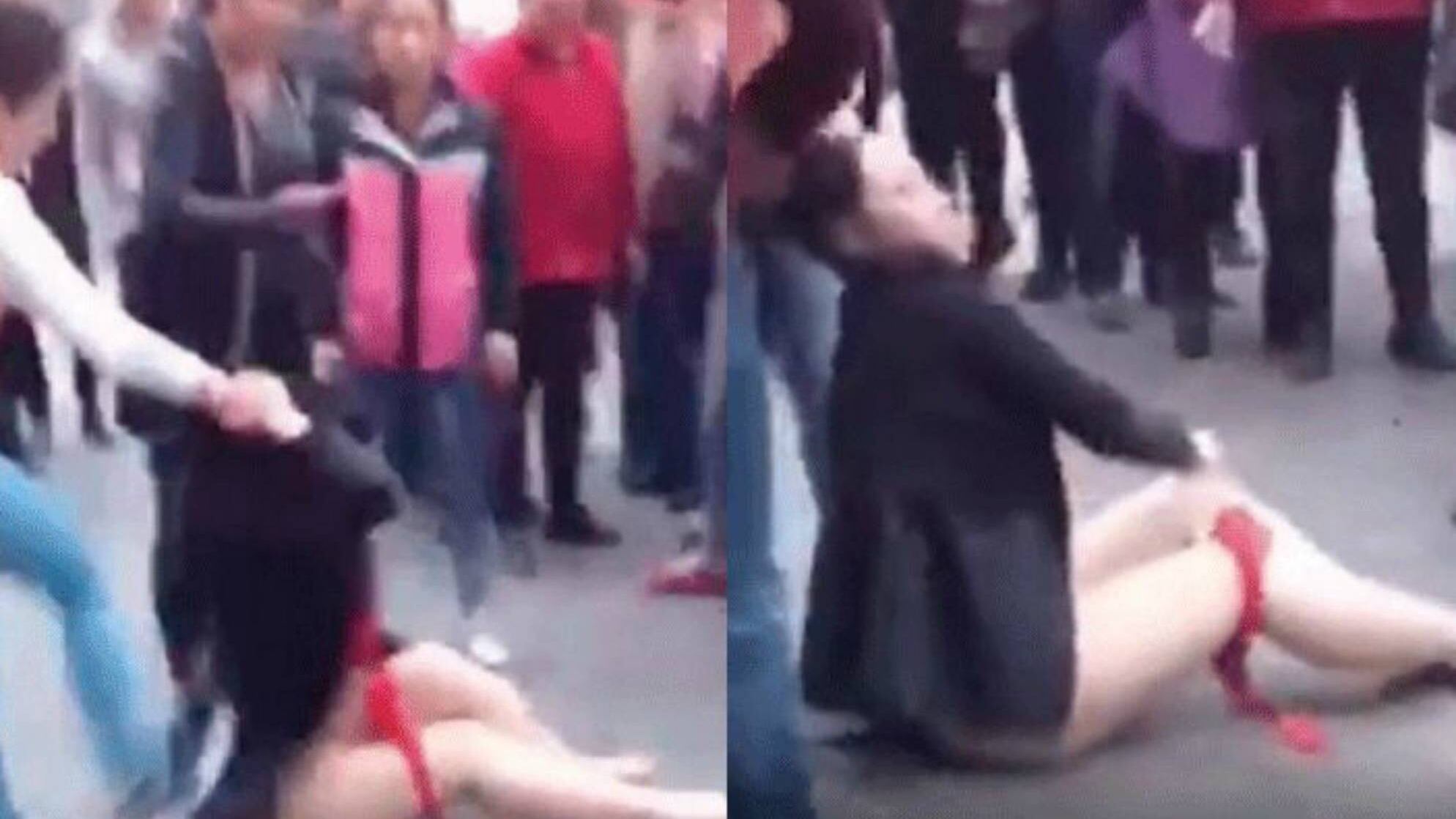 A pesar del nivel de salvajismo de la escena, nadie se acercó a ayudar a la mujer que estaba tendida en el suelo, quien sólo atinaba a defenderse como podía. Incluso se observa a un niño cerca del lugar presenciando la violenta escena, ocurrida en alguna ciudad de China.