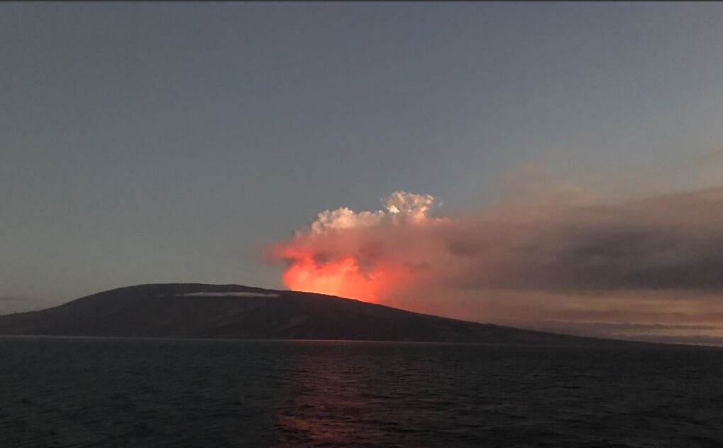 Al menos dos flujos de lava emana el cráter del volcán La Cumbre, en la Isla Fernandina del archipiélago de Galápagos, que este lunes inició un nuevo proceso eruptivo tras casi ocho años de aparente calma.