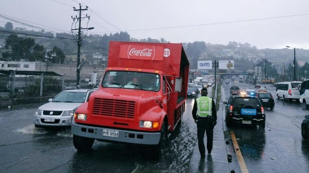La AMT recomendó, a través de Twitter, disminuir la velocidad y conducir con mayor precaución por lluvia en el Valle de los Chillos, centro y sur de Quito.