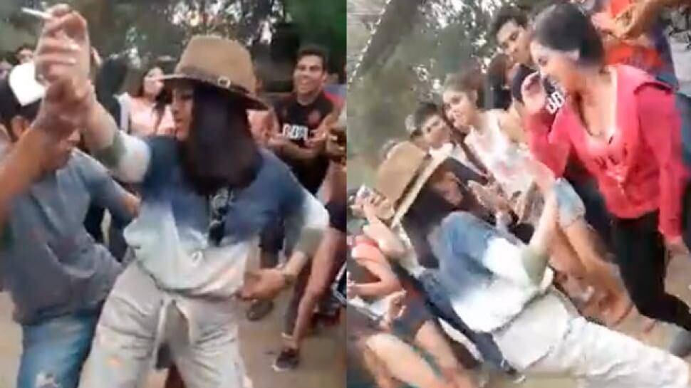 En la escena, captada en un parque, se ve a los alumnos rodeando en círculo a la docente, algunos sin camiseta.