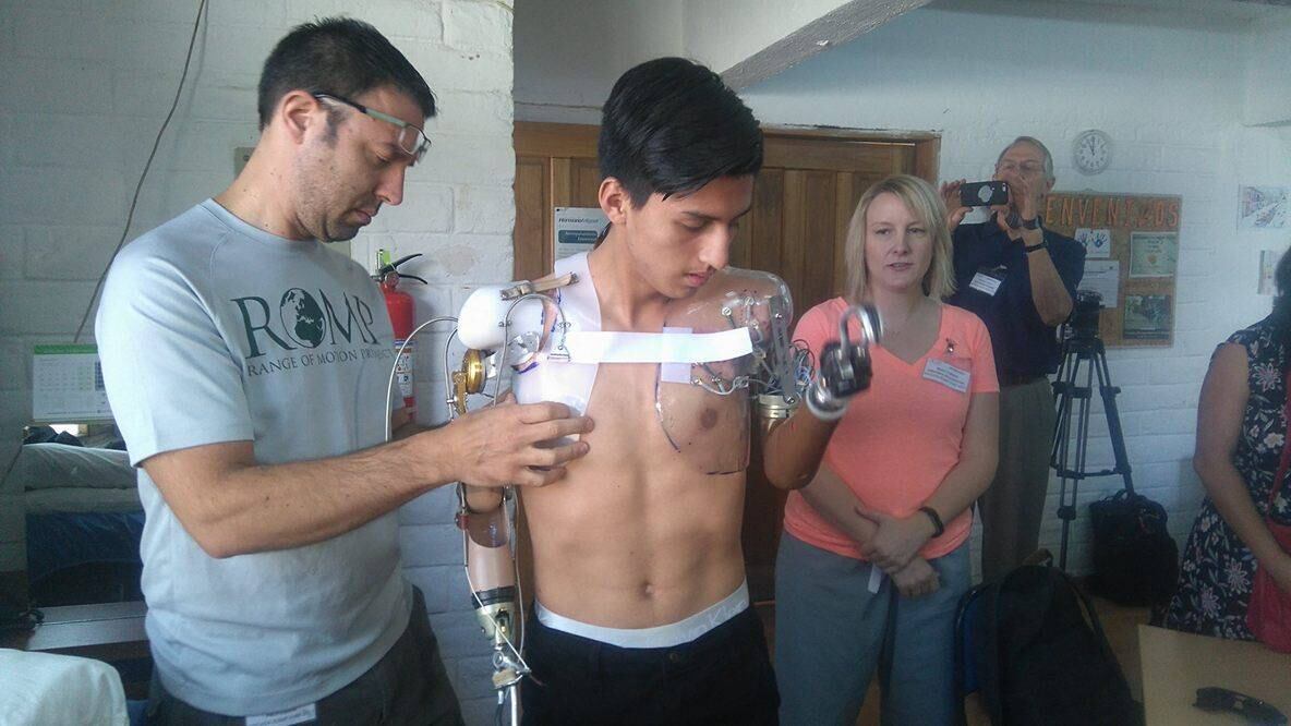 David retoma la palabra y cuenta que en la cirugía, previa a poner la prótesis, se movieron nervios para que cuando Brian piense en mover su mano o cualquier parte de los brazos, los músculos se activen a través de actividad eléctrica coordinada con sus neuronas. Brian practica con distintas herramientas externas que le ayudan a desenvolverse en áreas comunes como el baño, la cocina o su cuarto.