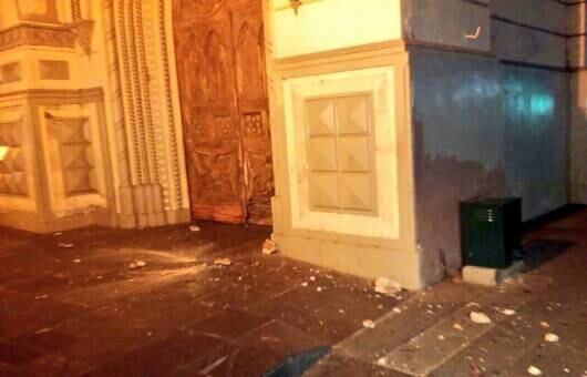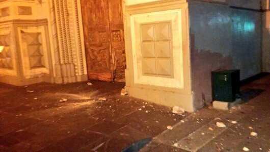 Parte de la cornisa se desplomó y dejó escombros en la entrada del edificio religioso, ubicado en la Victor Manuel Rendón y Pedro Carbo, según el portal de Ecuador TV.