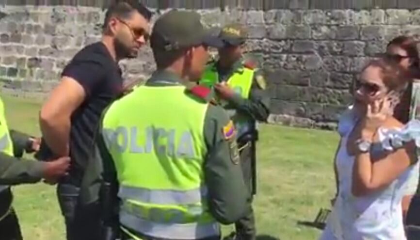 En las imágenes aparecen varios auxiliares bachilleres de Policía deteniendo a un hombre, acompañado de su pareja y otros conocidos.