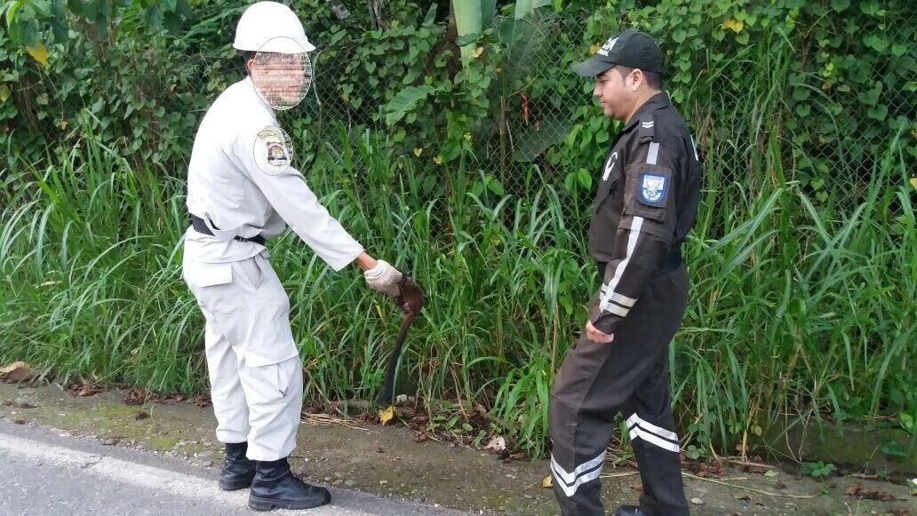 Al lugar de los hechos se trasladaron efectivos de la Policía Nacional, quienes mediante sus unidades especializadas en vida silvestre acudieron al sito para verificar y constatar el incidente.