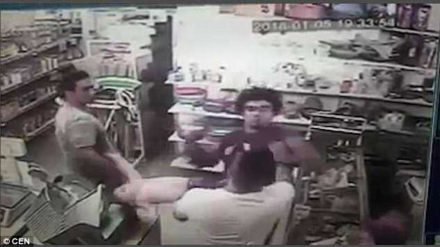 Las imágenes publicadas por el propietario del supermercado, donde estalló la violencia, mostraron que el más alto de los dos hombres arremetía a pesar de que el bebé estaba en los brazos de su padrastro.