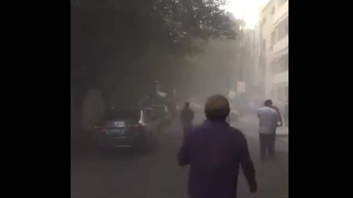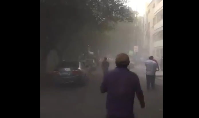 La nube de polvo llenó toda la vialidad mientras los transeuntes miraban estupefactos este hecho en una de las zonas más afectas tras el sismo del 19 de s