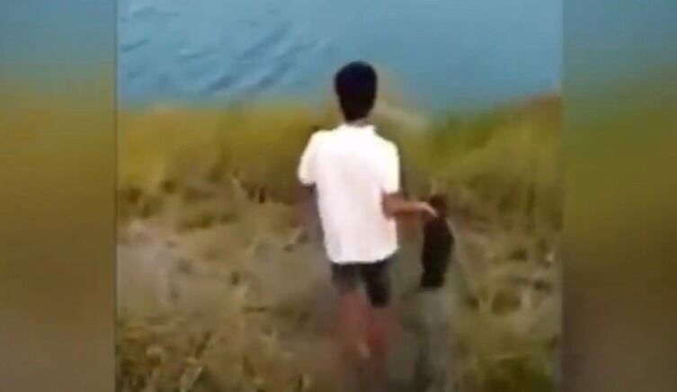 Un video en el que aparece un hombre lanzando a un perro vivo a un lago con cocodrilos, ha conmocionado a usuarios de las redes sociales.