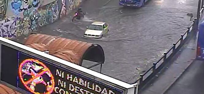 También se presentó acumulación de agua lluvia al nivel de la acera sobre la avenida Mariscal Sucre y Loja en sentido norte-sur.