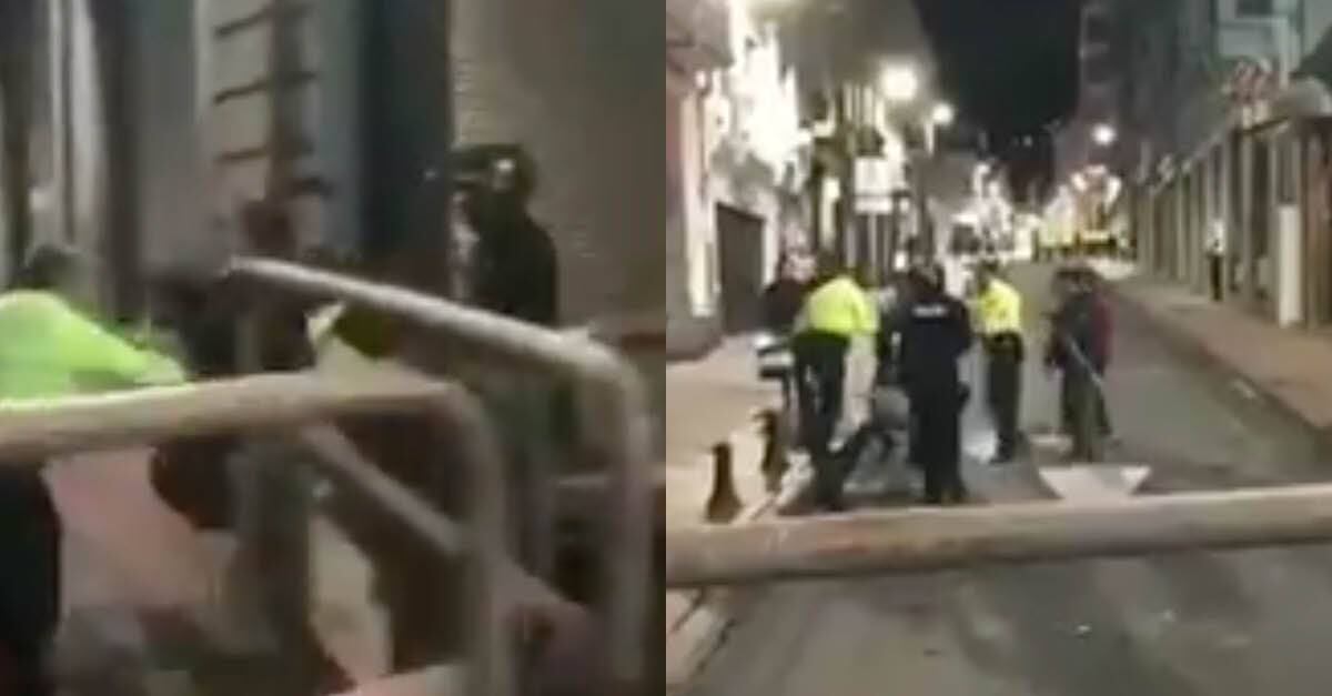 A través de la cuenta de Twitter oficial de Revolución Ciudadana, se compartió un video en el cual se puede observar como un grupo de uniformados forcejea con el manifestante y lo apartan de la concentración.