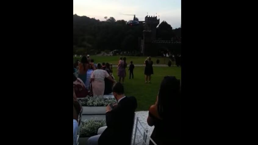 La grabación fue captada por uno de los asistentes de la boda. El videoclip registró cuando el piloto del helicóptero pierde el control de la nave. La aeronave cayó cerca del lugar de la boda.