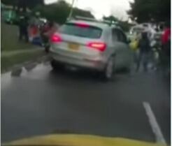 Conductor embistió a cinco motociclistas al tratar de huir de agentes policiales en Bogotá, Colombia. Durante una grabación se observa las peligrosas maniobras que hace el conductor.