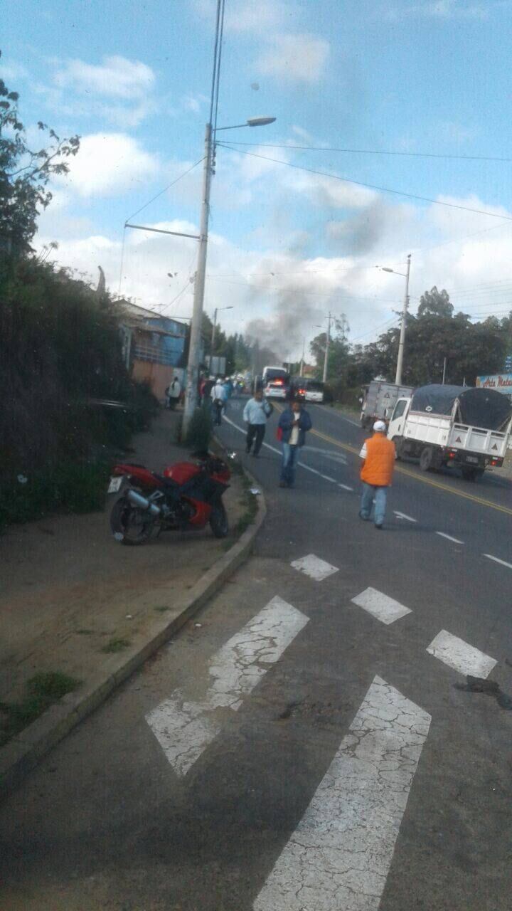 Aparentemente se trata de una manifestación ya que se puede observar que los ciudadanos están quemando llantas. Debido a esta situación se recomienda que tome sus debidas precauciones ya que existe restricción vehicular y de esta manera pueda tomar rutas alternas.