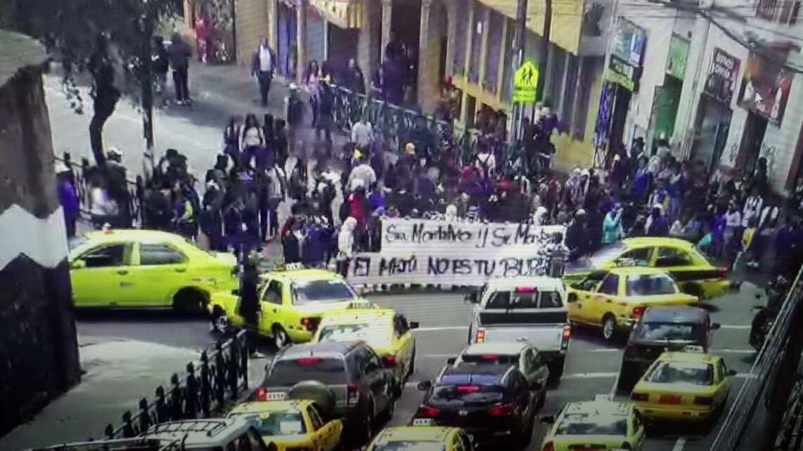 Hoy, 20 de junio de 2018, un grupo de estudiantes del Colegio Mejía en Quito se tomaron las calles al rededor de la institución. El objetivo es rechazar la decisión de las autoridades sobre el profesor que aparece supuestamente golpeando a estudiantes.