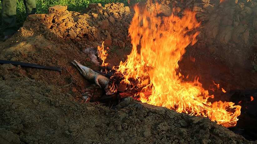 «Los cocodrilos muertos han sido quemados y enterrados», anunció el un funcionario de la Agencia de conservación de recursos naturales.