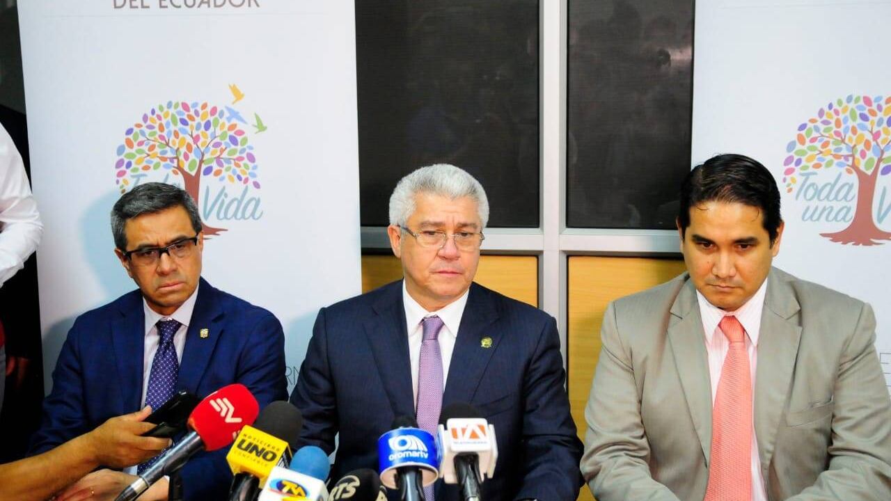 El Secretario Jurado, en rueda de prensa, estuvo acompañado por el secretario nacional de Planificación y Desarrollo, José Agusto Briones, y del subsecretario de Gobernabilidad de la Secretaría de Gestión de la Política, Javier Santos.