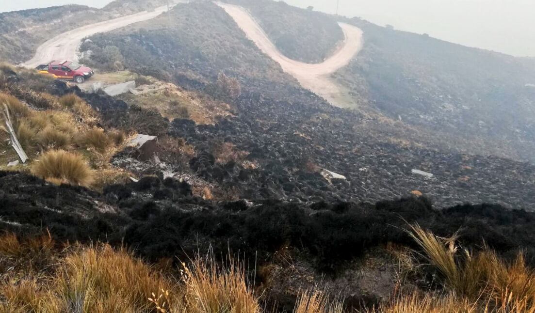 El domingo se registró una línea de fuego de más dos kilómetros, con llamas de hasta tres metros de altura en el cerro Atacazo, donde el trabajo de extinción, a 13.500 pies sobre el nivel del mar, se realizó mayoritariamente de manera manual por las condiciones de acceso al lugar, según los Bomberos de Quito. EFE