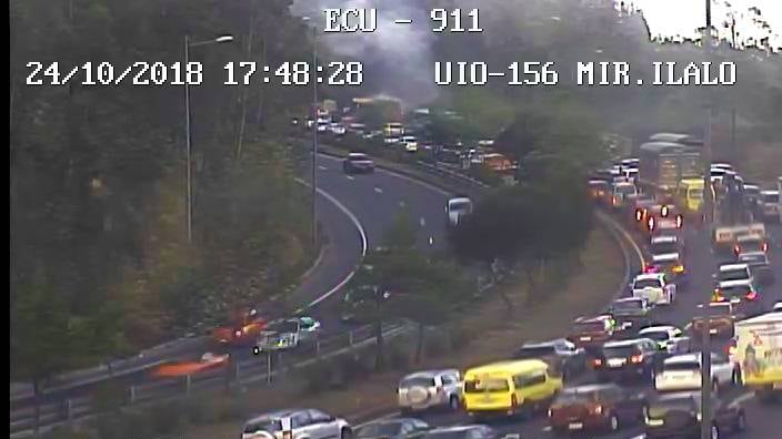 Cerca de las 18:00 de este 24 de octubre de 2018 se reportó un fuerte tráfico sobre la avenida Simón Bolívar, sector Mirador de Ilaló, sentido S – N. Esto se debe a un incendio vehicular. El ECU 911 visualizó la emergencia a través de sus cámaras de videovigilancia.