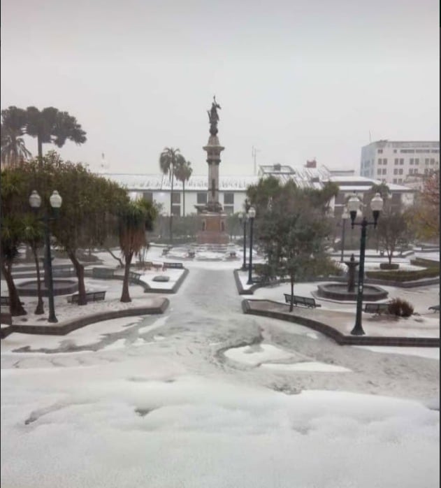 Este sábado 17 de noviembre se registró un fuerte granizada y tormenta eléctrica en Quito. Como resultado de ello se produjo varios problemas en las vías de la capital.