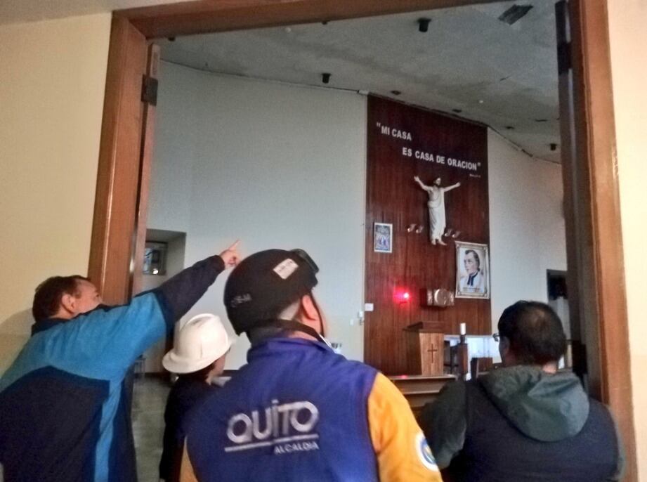 Personal de la Subsecretaría de Educación de Quito, el Distrito 4 – Centro, la Secretaría de Gestión de Riesgos y autoridades de la IE La Providencia, se mantienen en reunión para determinar las acciones correspondientes y el informe final sobre el grado de afectación.