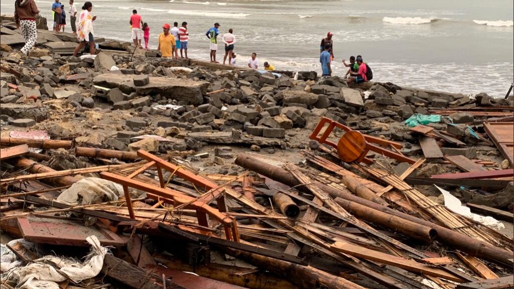 Cabañas destruidas y escombros se observó en fotos publicadas por los moradores en sus redes sociales. La marea levantó los adoquines del malecón. Tonchigüe también sufrió afectaciones en sus casas e infraestructuras turísticas.