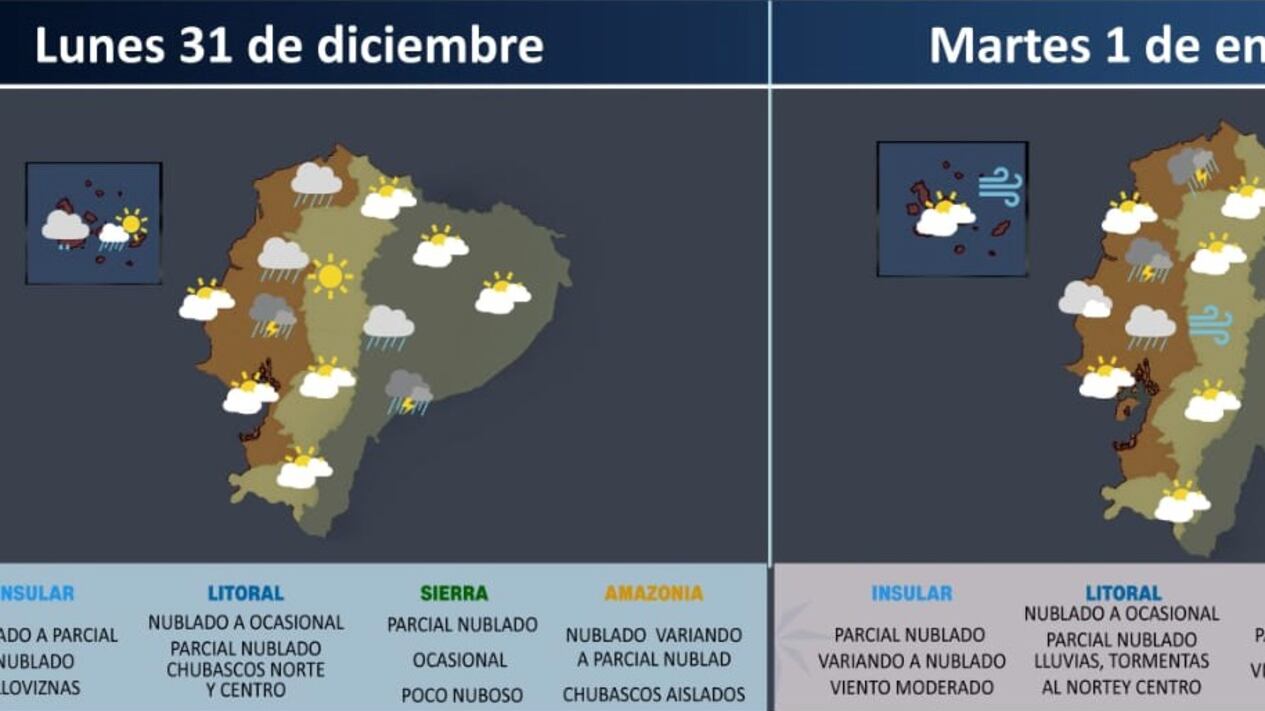 A continuación, conoce el pronóstico para las demás regiones del Ecuador. El boletín incluye información del tiempo para el 31 de diciembre y 1 de enero: