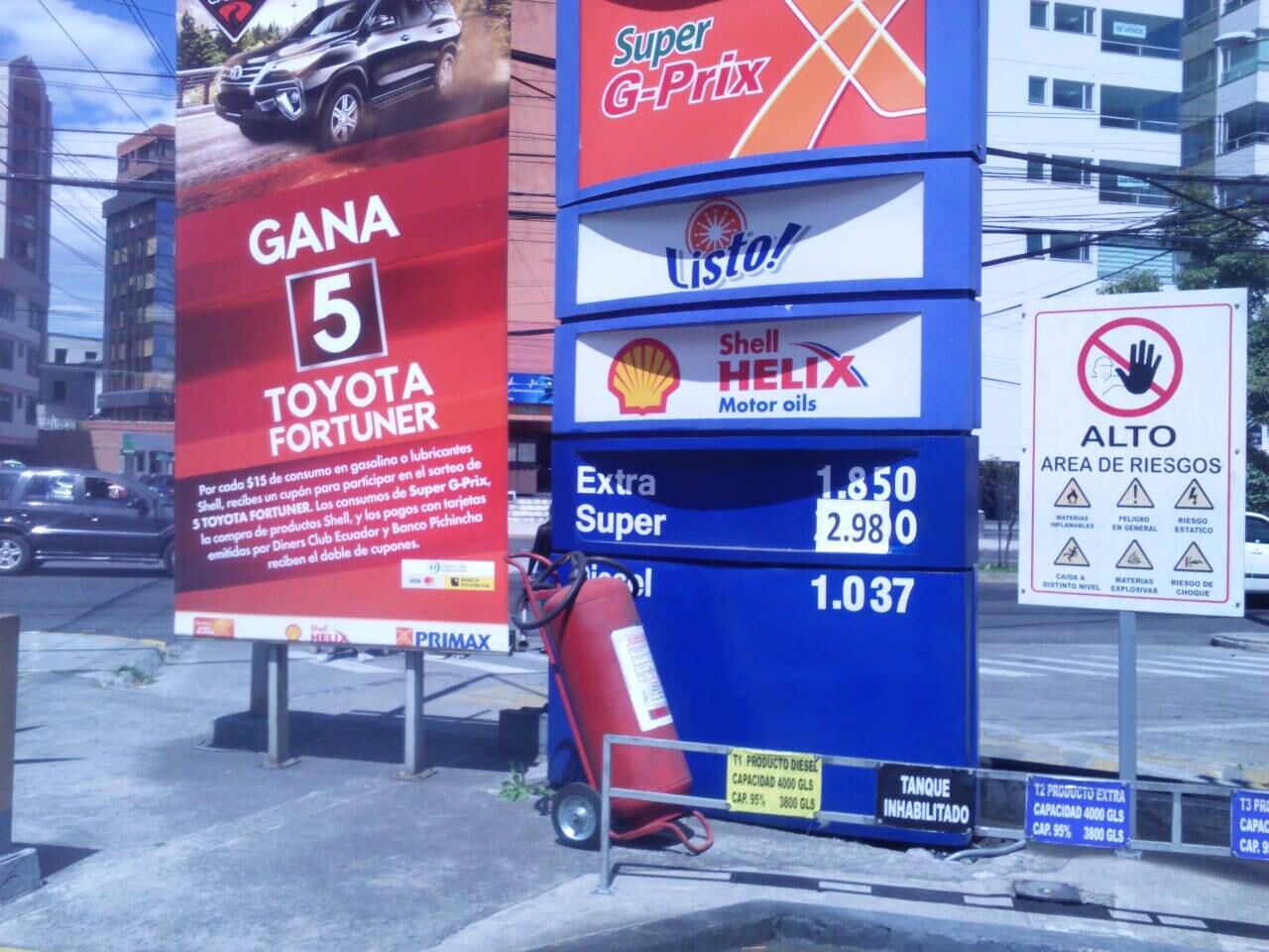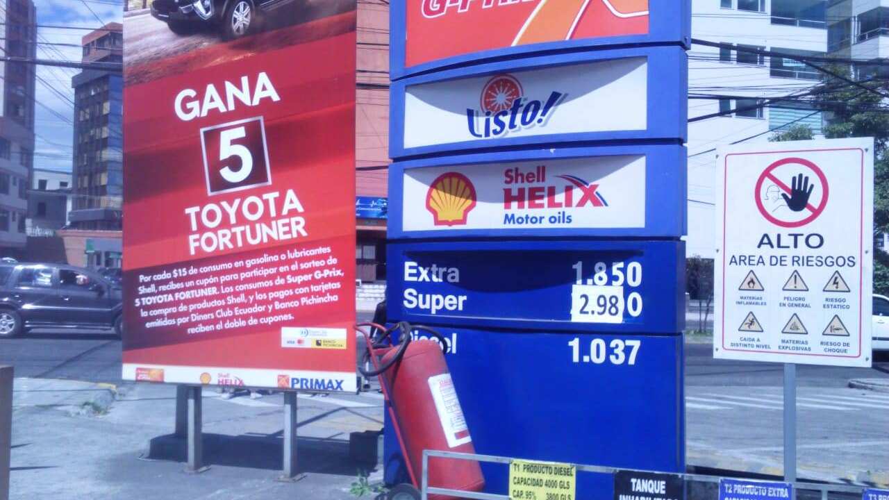 Esos son los costos que se muestran en los letreros de estas gasolineras de Quito, según pudo constatar este medio. Vale recordar que la gasolina súper puede variar mes a mes, de acuerdo al mercado internacional, como es en la mayoría de países.