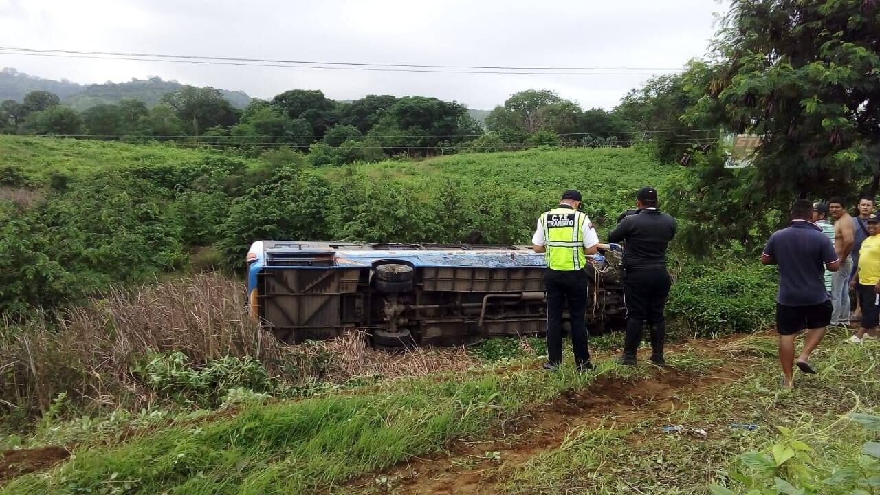 Efectivos de la Comisión Nacional de Tránsito explicaron que el autobús perdió el control y se salió de la vía, lo que provocó que el vehículo volcara y 16 personas resultaran heridas y una falleciera en el lugar.