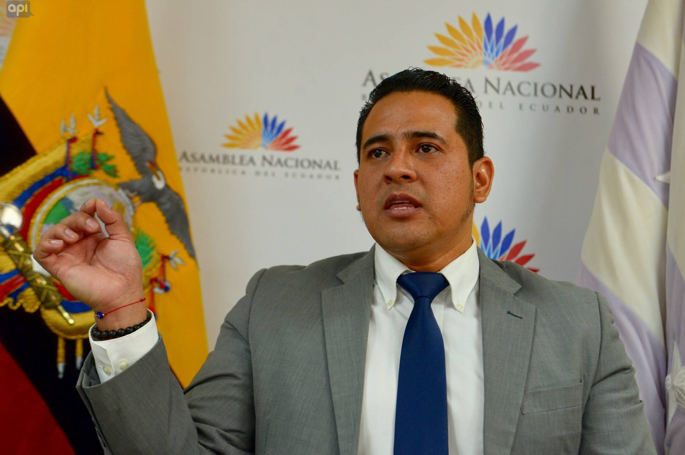 La mañana de este 11 de marzo, el legislador Alega acudió a la Fiscalía para presentar la denuncia contra Elizabeth Cabezas y María Paula Romo por un posible tráfico de influencias.