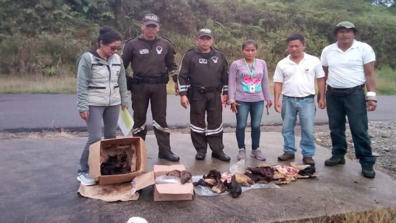 Miriam Moposita, técnica de vida silvestre, señaló que el Ministerio de Ambiente «ejecuta acciones en todo el territorio para evitar la cacería y comercialización de vida silvestre pues constituye un delito ambiental».
