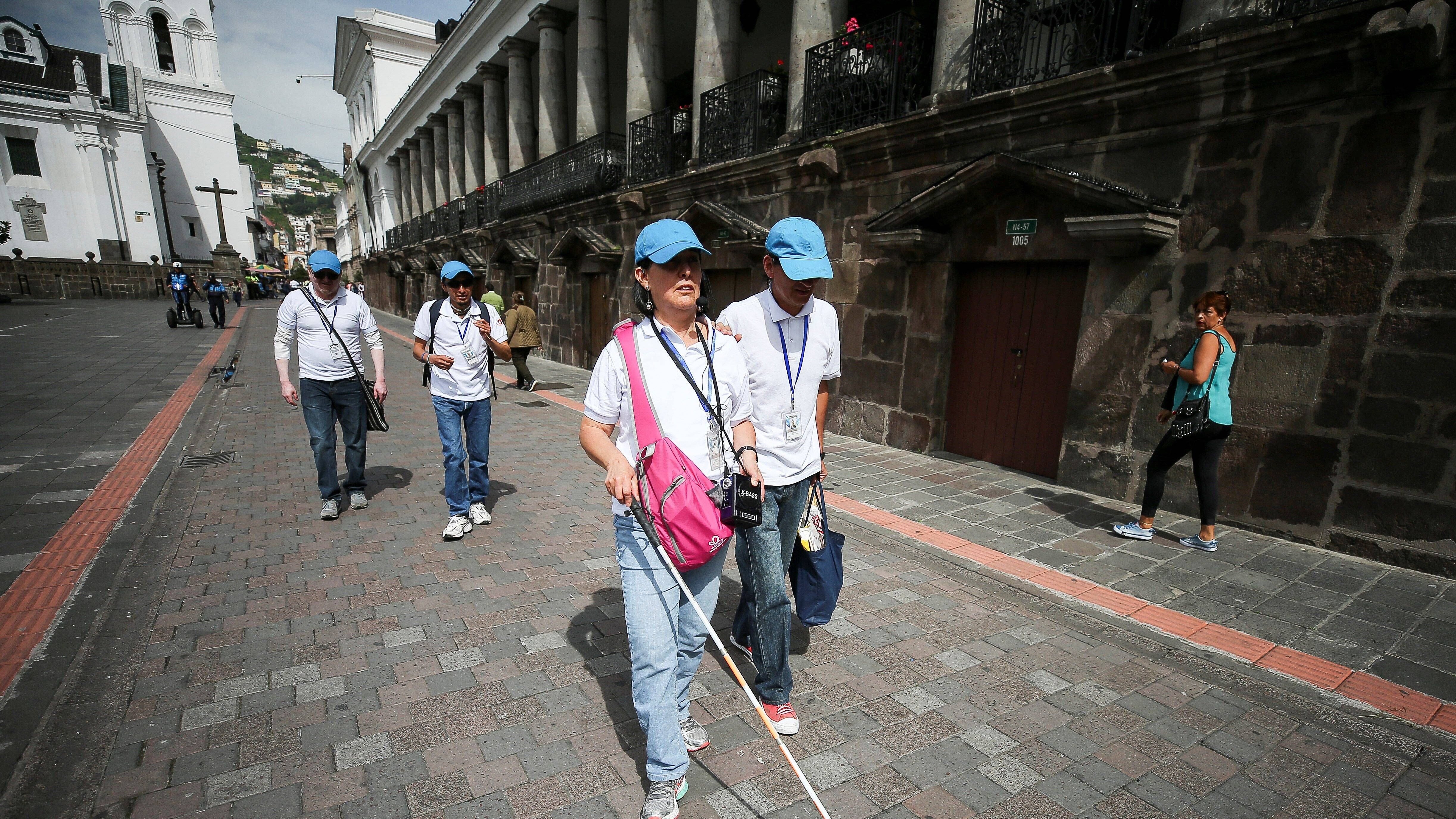 Cinco guías turísticos no videntes pasean a los turistas en el centro histórico de Quito lleno de experiencias sensoriales. Una prueba de que la cultura no entiende de discapacidades y de que la mejor forma de ver no siempre es con los ojos.