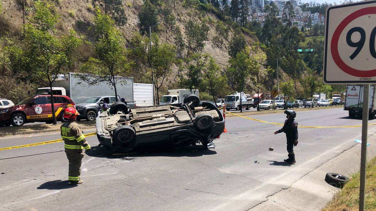 En el siniestro se registraron dos personas con heridas leves , según reportó el Cuerpo de Bomberos de Quito. El hecho fue en la avenida Simón Bolívar sentido Sur – Norte, por el sector del Liceo Campoverde.