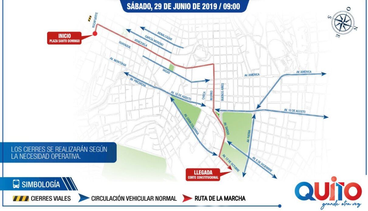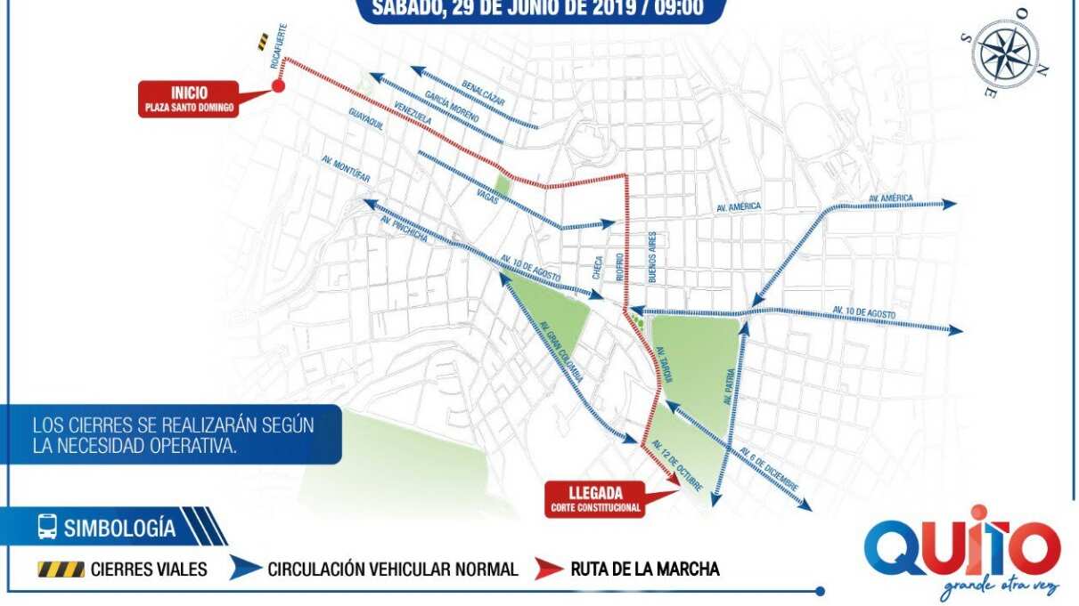 Hoy, 29 de junio de 2019 se realiza una marcha civil en Quito. Ante esto, la Agencia Metropolitana de Tránsito (AMT) informó sobre el plan operativo de movilidad y cierres viales.