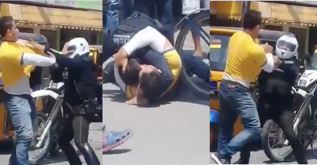 Este jueves 25 de julio se viralizó un video donde un oficial de la Policía Nacional se enfrenta a golpes con un ciudadano . La gresca dura un minuto, aproximadamente.