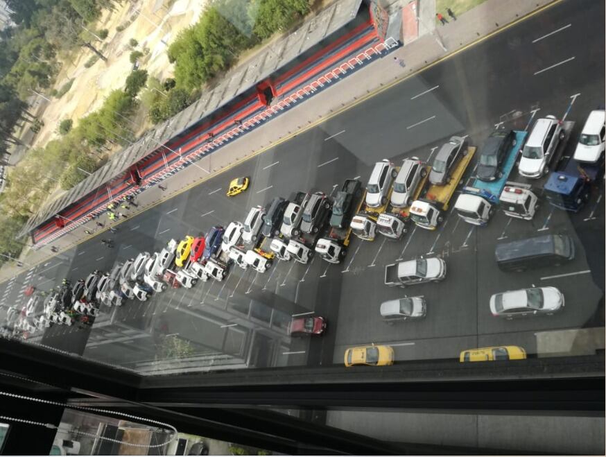 Imágenes muestran en la avenida de los Shyris, norte de Quito, una larga fila de vehículos en wincha.
