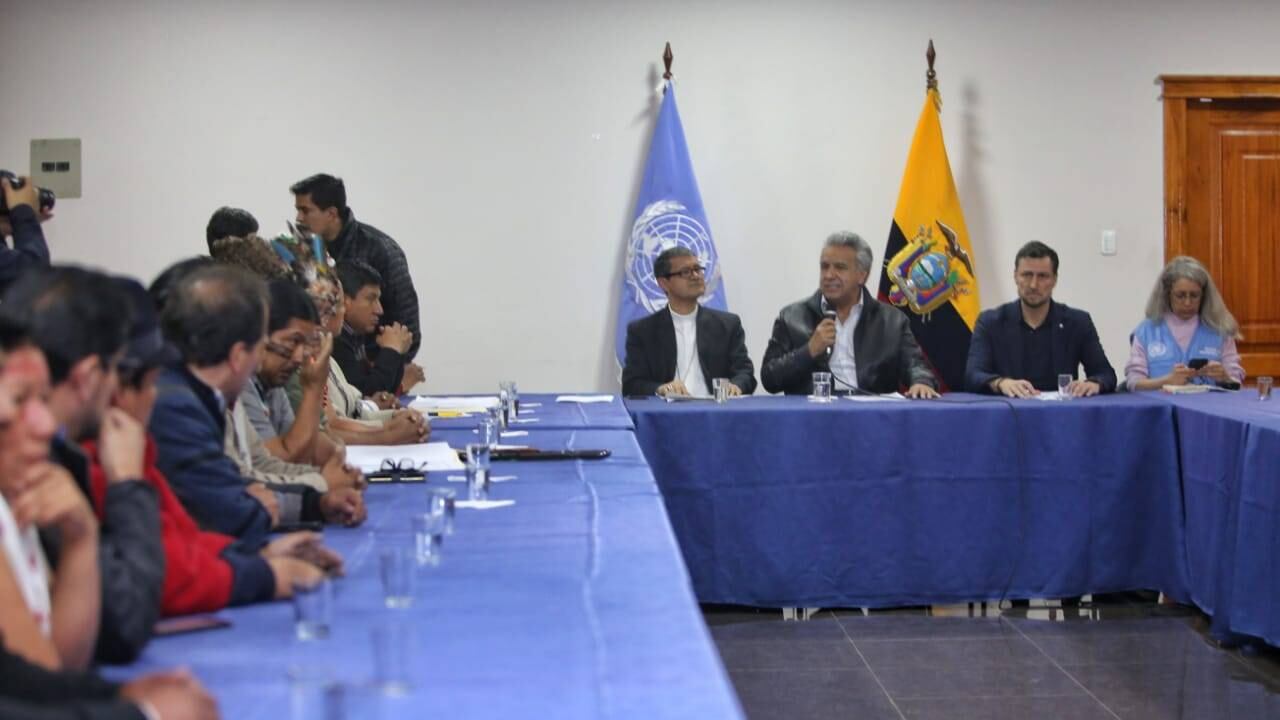 El encuentro comenzó con un minuto de silencio por los fallecidos en las protestas (siete, según la Defensoría del Pueblo), y bajo un tono conciliador entre los participantes pero con la firmeza indígena a su petición de retirar el decreto que eliminó los subsidios.