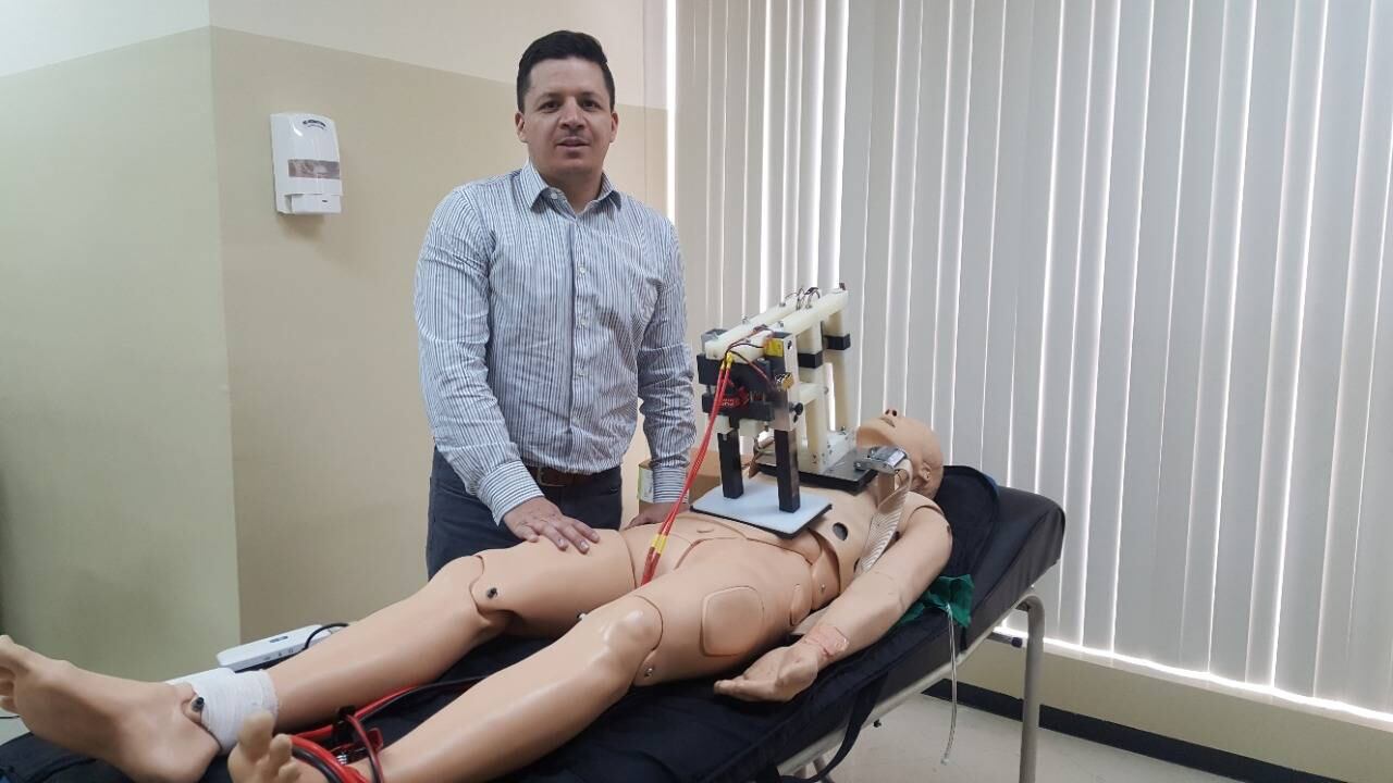 Junto con mis estudiantes nos conectamos con las universidades y empezamos a desarrollar este resucitador cardiopulmonar automático de bajo costo.