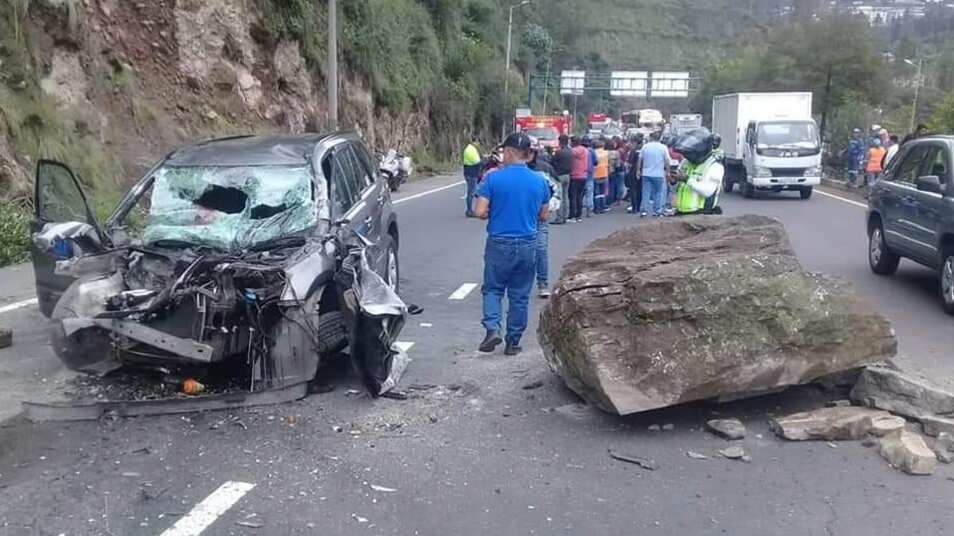 Este jueves 2 de enero ocurrió un fatal accidente en Quito. Un vehículo del Municipio fue afectado tras el impacto de una piedra que cayó en la avenida Simón Bolívar. Lamentablemente, una persona falleció.