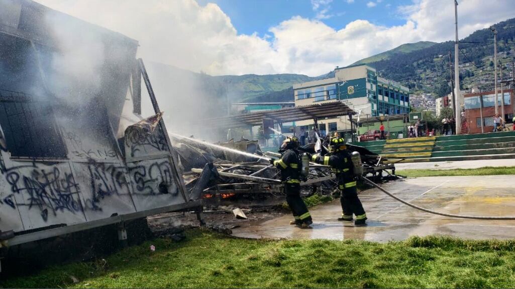 Varios espacios quedaron calcinados producto de las llamas en un colegio al sur de Quito. Personal bomberil lograron sofocar el incendio que ocurrió a las 13:36 de este 04 de marzo del 2020.
