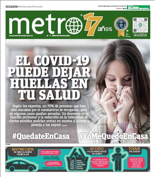 Para acompañar esta mañana de miércoles, te traemos la edición digital de Metro Ecuador ¡Descárgala AQUÍ! Es momento de estar en casa y te mantendremos informado con lo más destacado de Ecuador y el mundo.