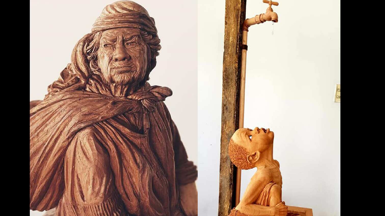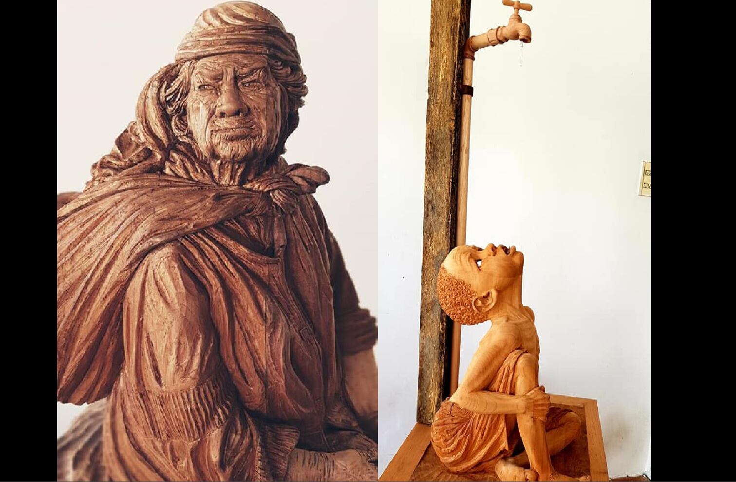 «La ultima gota».Villalba explicó que expone a un niño con delgadez extrema a la espera que le caiga una gota de agua del grifo. La obra es de 100 centímetros de altura y pesa 20 kilos. «Es un tema más universal que representa la problemática del agua, el hambre y la pobreza en el mundo», detalló.