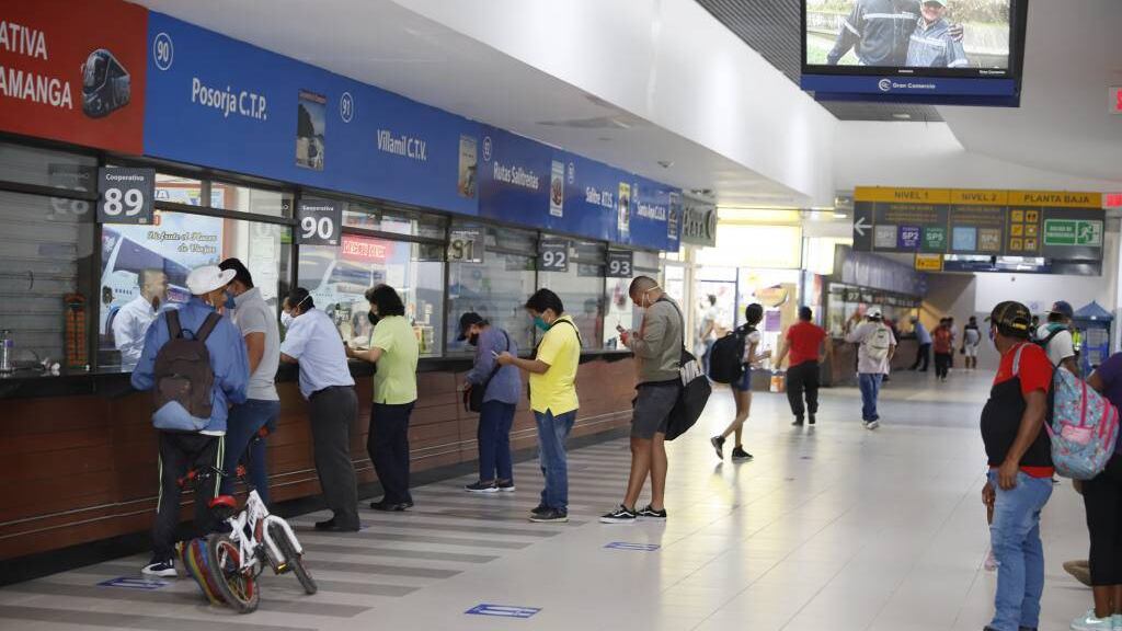 Para ingresar a la Terminal debe pasar por un protocolo de bioseguridad: toma de temperatura, desinfección de calzados, uso obligatorio de mascarilla.