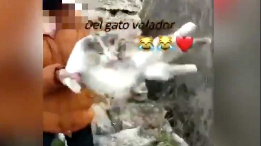 En las imágenes se observa cómo la chica sostiene al gato y tras balancearlo lo arroja y éste cae sobre el asfalto de una carretera. De fondo suena la popular canción del artista panameño El Chombo, según ha informado la Guardia Civil en una nota de prensa. Mientras tanto, una persona está grabando a la chica cuyo rostro aparece difuminado.